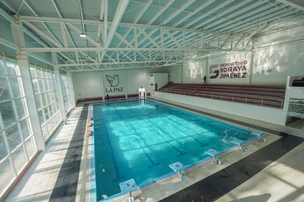 Saludos. El Gobierno de La Paz informa sobre la reinauguración de la alberca semi olímpica en el Deportivo Soraya Jiménez,