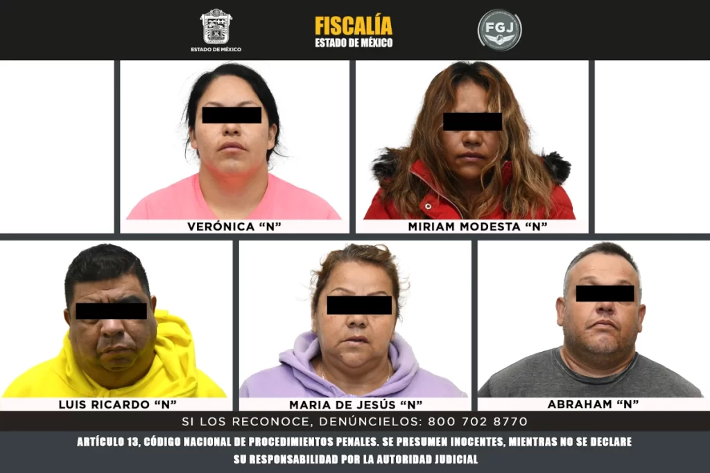 Toluca, Estado de México, 3 de septiembre del 2025.- Luis Ricardo “N”, Abraham “N”, Miriam Modesta “N”, Verónica “N” y